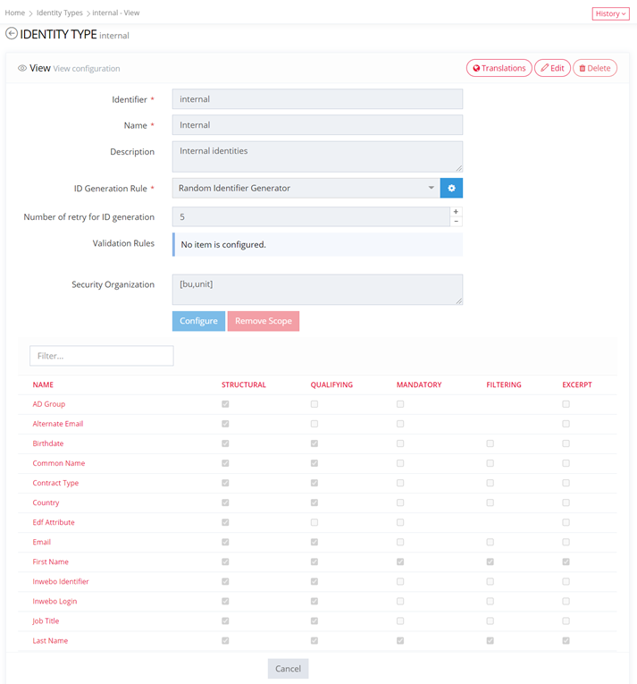 Identity Object Type Configuration