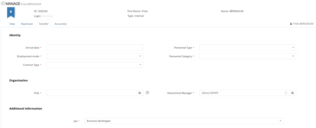 Transferred identities usually have specific access requirements (keep former accesses for a time while already having new rights).
