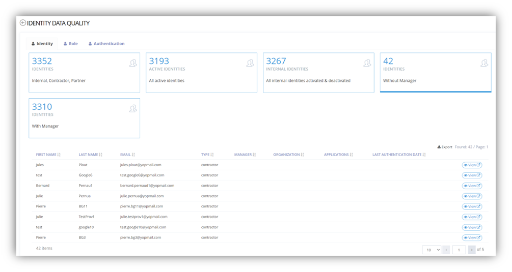 Memory offers a set of reports natively allowing to present and control a set of information (Reconciliation, access, Identity quality, role usage, apps assignment, billing, provisioning status, …) . Like all Memory features, these reports have management scopes allowing only the necessary information to be presented depending on the administrator logged in (example: only view and control data for a BU).