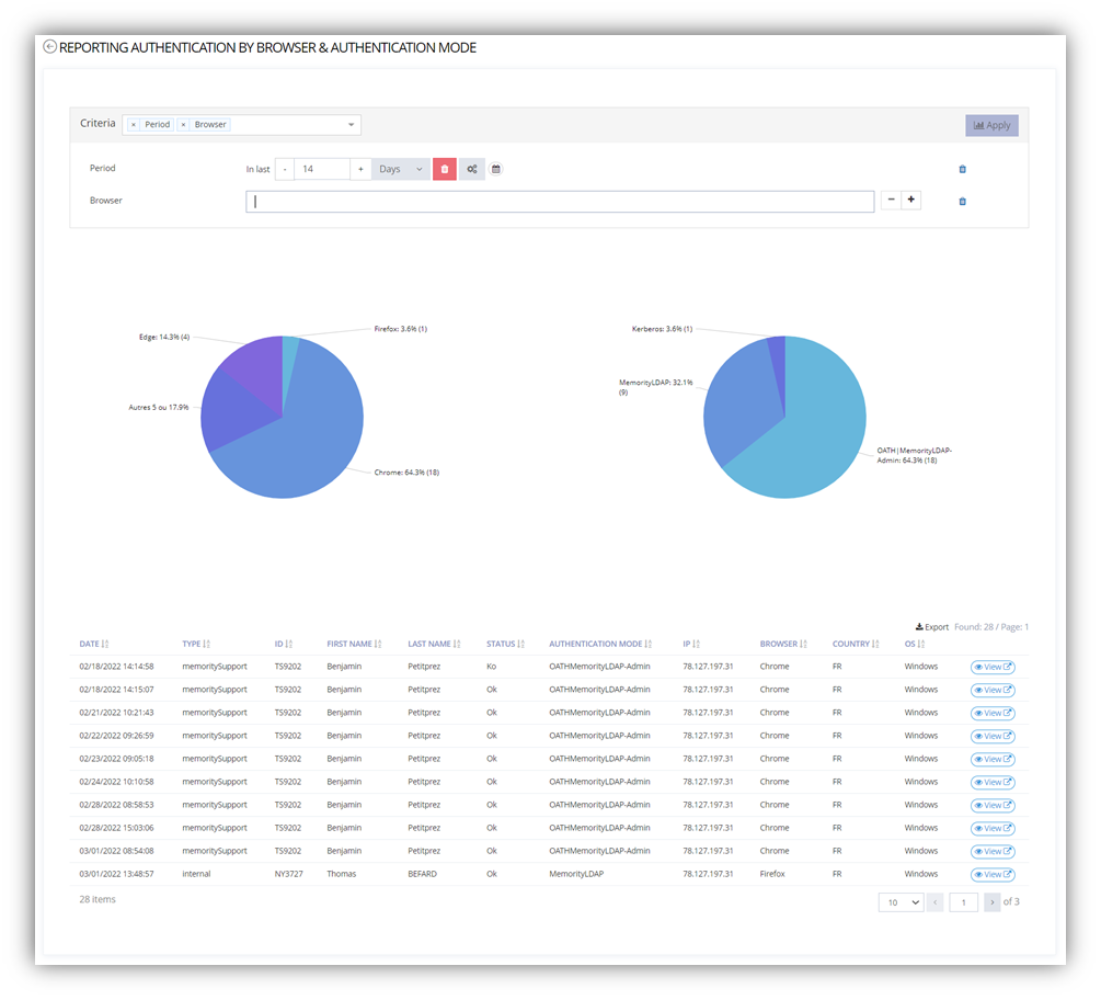 Standard reporting data comes from the activity of the Memority services. However, these data schemes can be extended with data coming from our clients’ IT systems and can be fed using a native connector exposed by Memority. This feature allows our client to provision Memority reporting database with custom information and build their own dedicated reports.