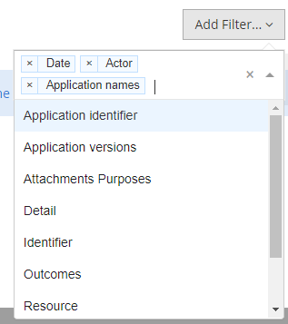 Add filter | You can add one or several filters to search more precisely for an Audit Event by clicking on "Add Filter..." button. | ![]() |