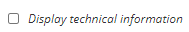 Display technical information | By clicking on the checkbox button, allows to display the configured search expression on the setting "audit.search.defaultFilter" is applied. When you clicking on this checkbox button, the search is auto-executed. | ![]() |