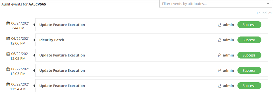 The events are searchable by a dropdown list. It displays attributes on which an event has been performed.
