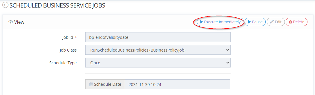 Each time a Business Policy is created, an associated Job is created (according to the id of the Business Policy) in the "Business Service" tab. This job should be executed immediately or launched in scheduled mode to activate the Business Policy.