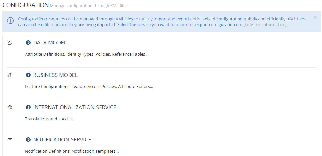 This part allows to import or export Configurations of services: