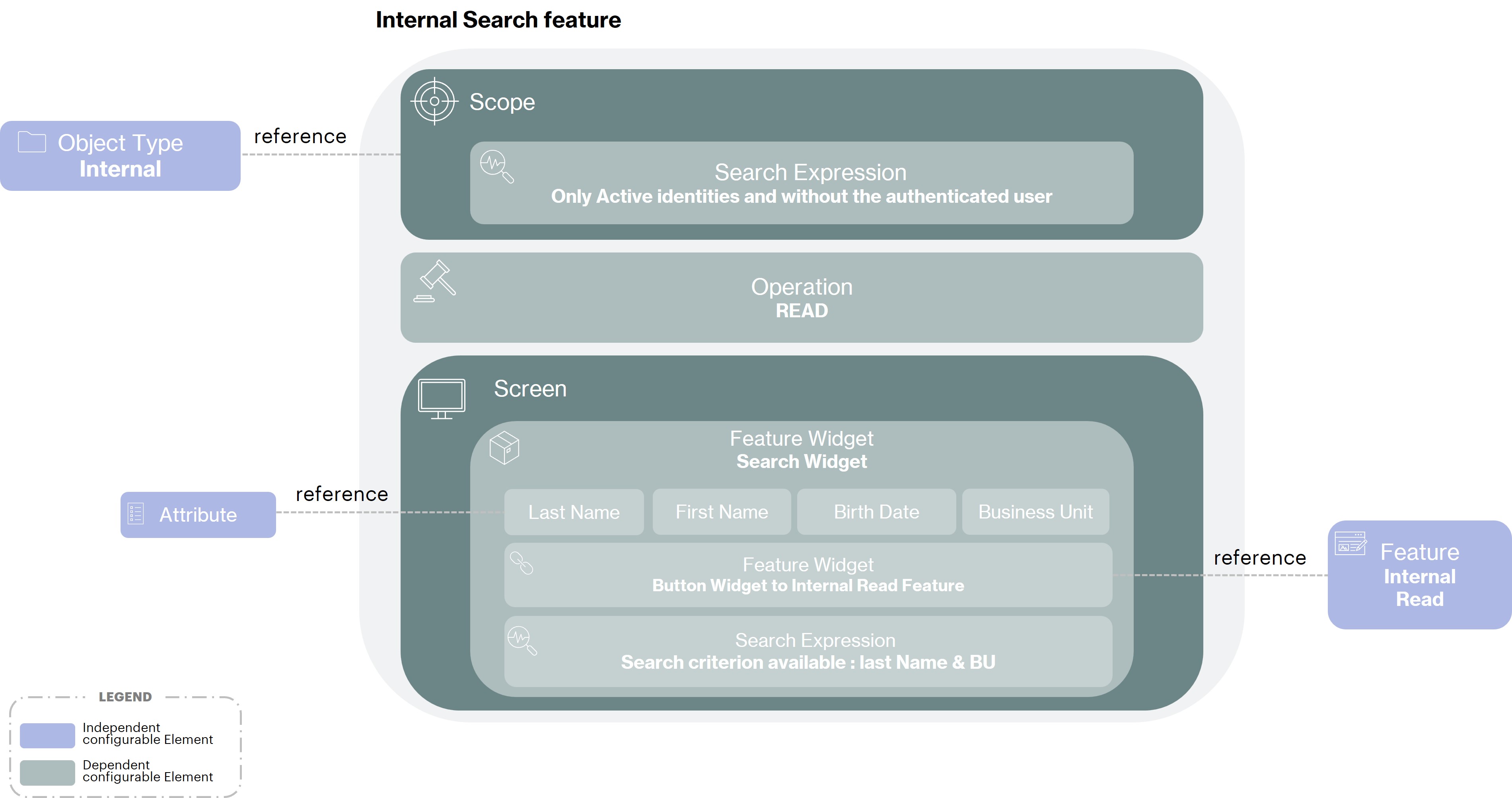 internalidentity type, to restrict the modification of identity only of this type. The Scope will also declare a Search expression to restrict the edition to theactiveinternals onlyIn the Screen, we find Widgets in
