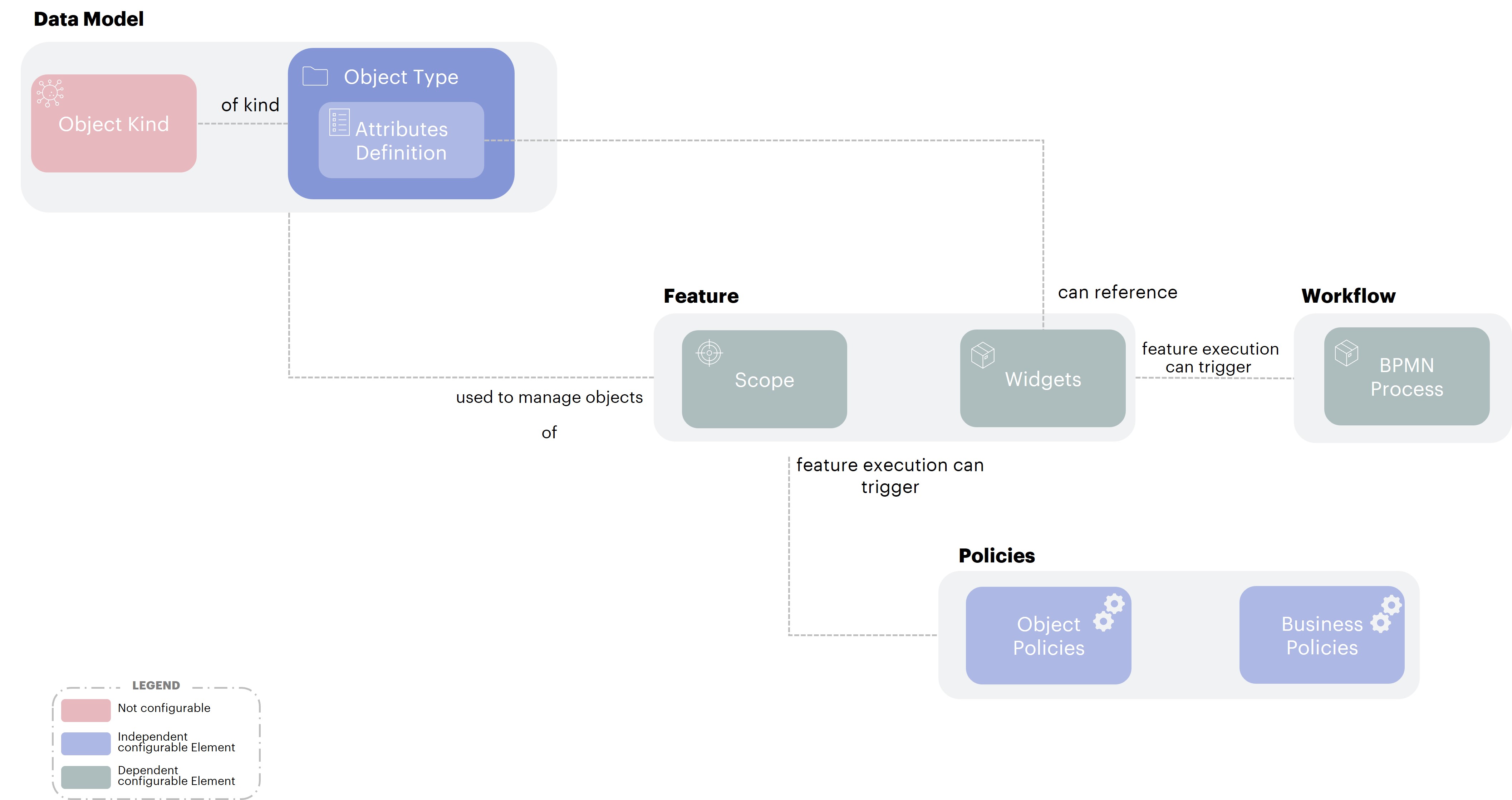 A Business Policy allows to configure how to trigger actions on Object Types through a Feature with an optional configured Workflow.