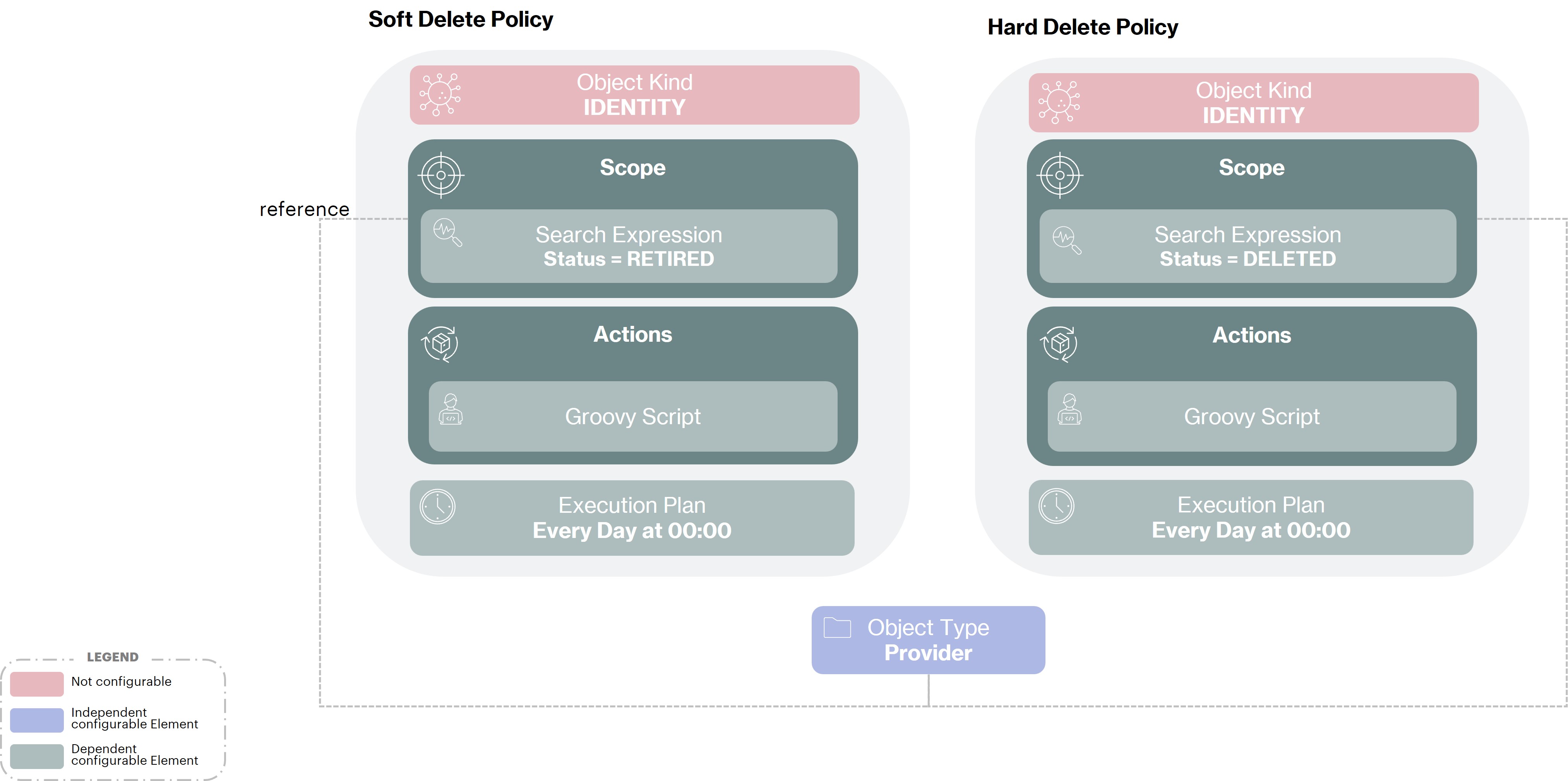 To handle the Soft Delete and Hard Deletion we will implement 2 object policies as follows :