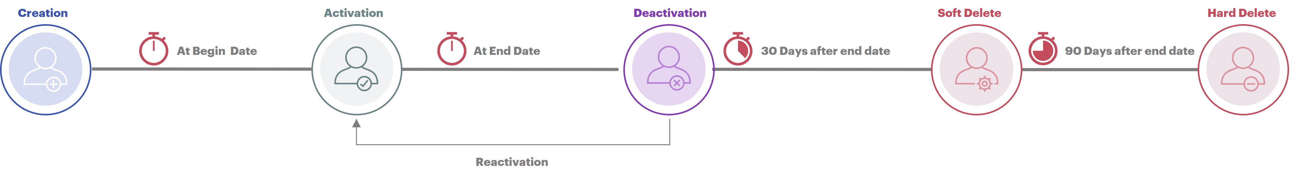 30 days after his/her departure (if he/she has not been reactivated), the provider will switch to the deleted status (soft delete).