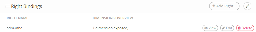 You can bind a right to a Role by clicking on the "Add Right" button.
