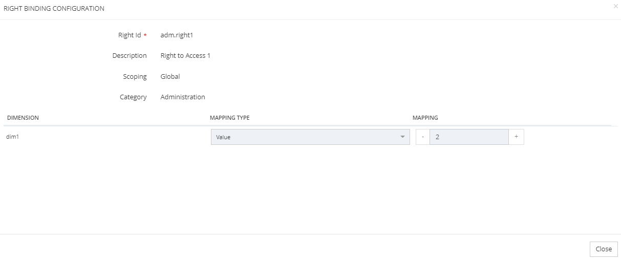 When configuring a Right Binding on a Role, all of the dimensions must me mapped. This means the binding must configure how the value for these dimensions will be computed.