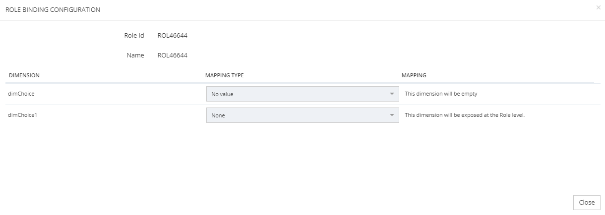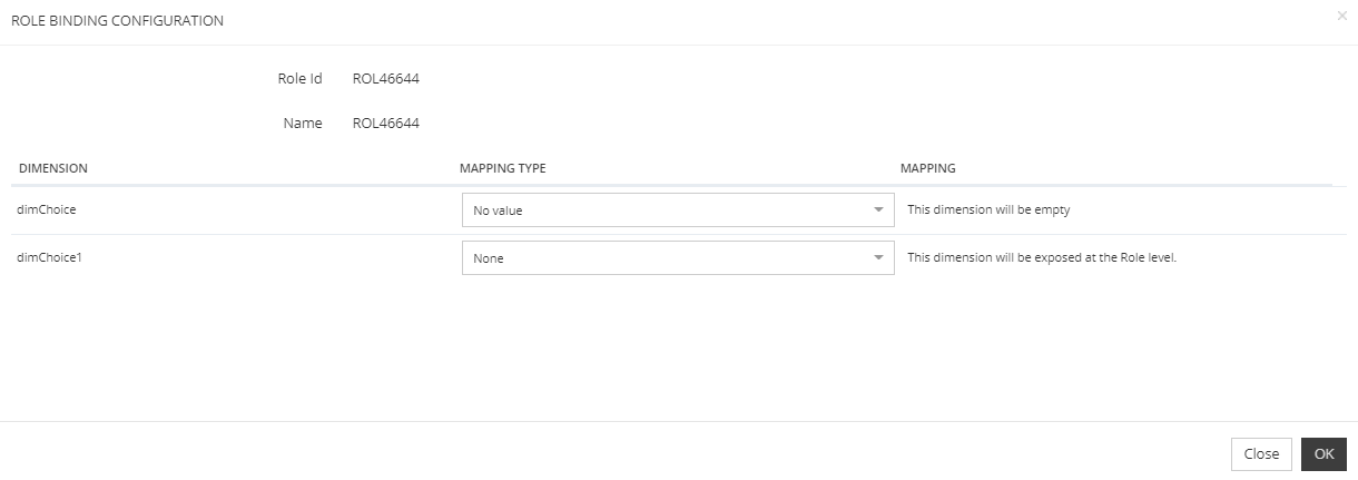 This part allows to define the dimensions mapping on the Role.