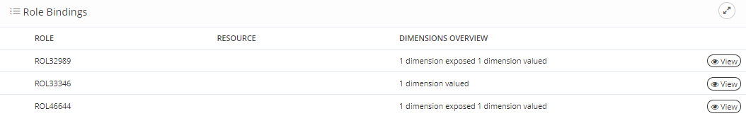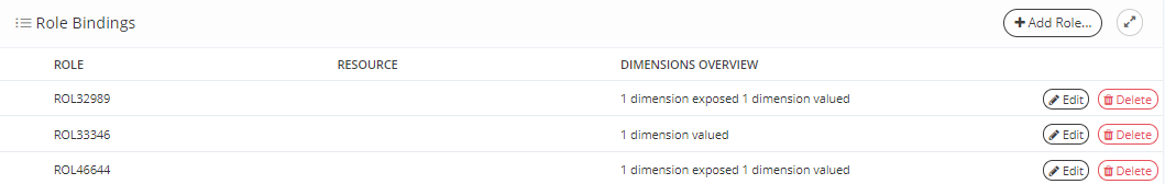 When you choose a Role with configured dimensions, the following information is displayed: