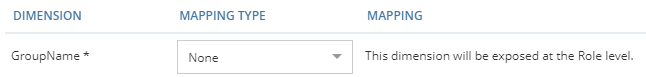 | When no Dimension Mapping is set, then the Dimension is visible directly on the parent Role. It is considered as "exposed". Technically, it is as if the child Role or Right's Dimension were configured directly on the parent Role. | ![]()