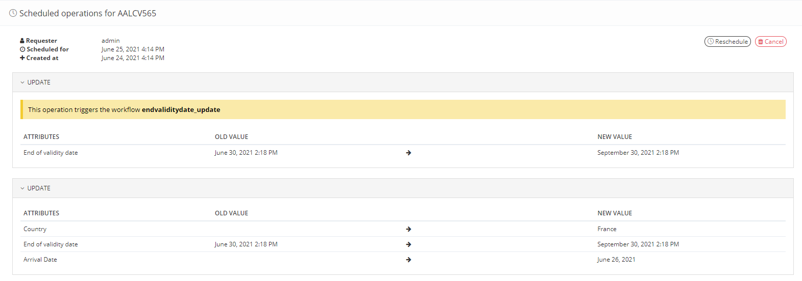 Only a user who has the "sys.bum-feature-manager" right can cancel or reschedule feature executions through this Widget.