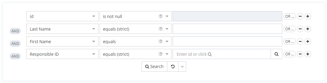 false | ALL | Operators are invisible. The values chosen for the search expression are kept. | ![]() |