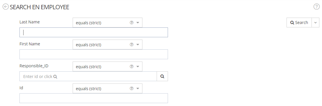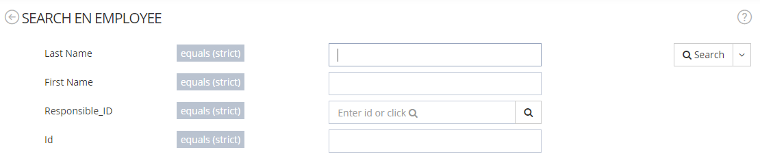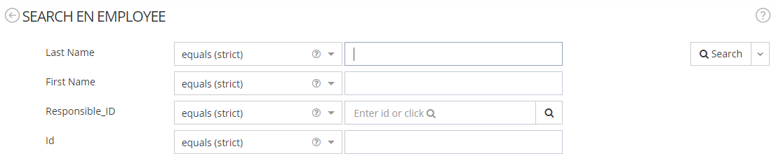 | YES | Mode configured for the search feature. | SIMPLE (in this mode, attributes must be filterable). MULTICRITERIA (allows to combine searches involving several attributes). FORMULA (allows to search with a pre-filled formula). |