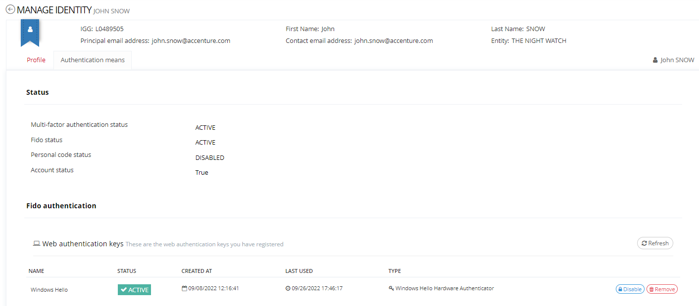 The Webauthn Device Management widget is used to manage the available device enrolled using Webauthn. They can be renamed/deleted.